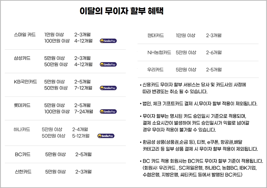 10월 신용카드 무이자 할부 혜택을 아래와 같이 안내드리니 이용에 참고하시기 바랍니다.